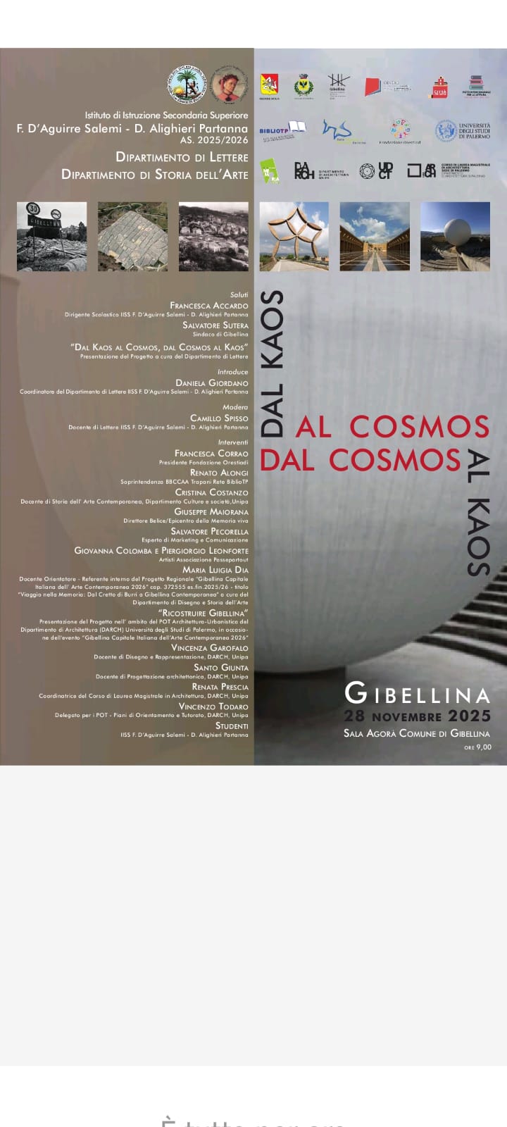 Documenti Circolare n. 129 del 26.11.2025 - VISITA DIDATTICA GIBELLINA 28.11.2025 pdf - 204 kb Locandina evento jpeg - 101 kb