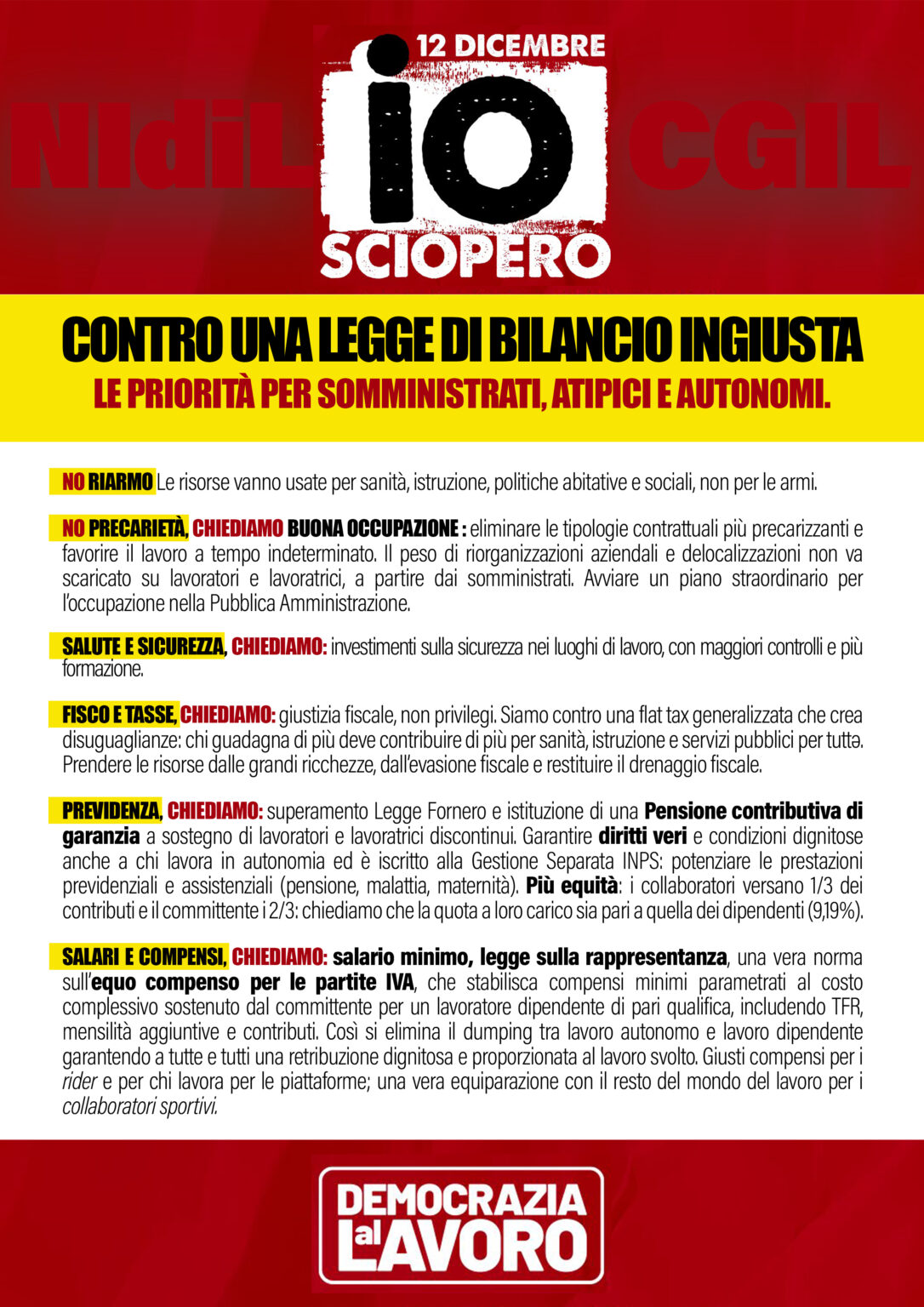 Documenti Circolare n. 143 del 09.12.2025 - Sciopero Confederazione CGIL 12-12-2025 pdf - 198 kb Avviso di sciopero -Locandina-12-dicembre-2025 jpeg - 372 kb